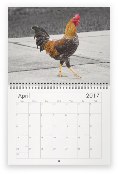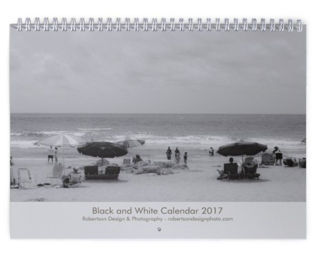 The Black & White Calendar features scenes that are mostly in black and white, with a splash of color. Please note, only the cover page is completely black and white.
